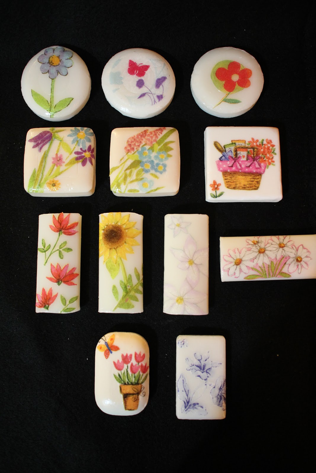 Estes são os últimos sabonetes que fiz. Têm motivos diferentes dos anteriores mas mantém o cheirinho :)