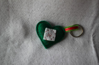 | Porta-chaves em feltro com aplicação de fita de organza e fita acetinada |