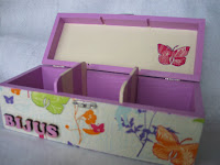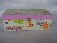 Esta ainda não está totalmente finalizada e só o farei quando souber para que é que a caixa vai servir! Ou seja, ainda vai ter umas aplicações em MDF, letrinhas ou bonequitos de acordo com a sua função.
