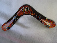É um boomerang artesanal e foi oferecido pelos amigos Ben e Christine.