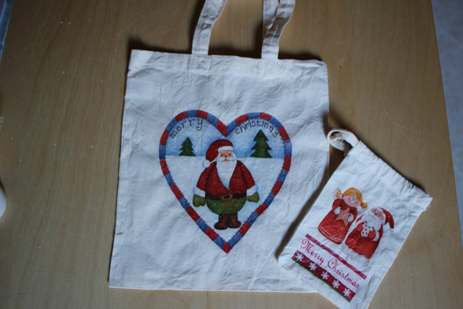 | Sacos em pano cru, motivos natalícios |