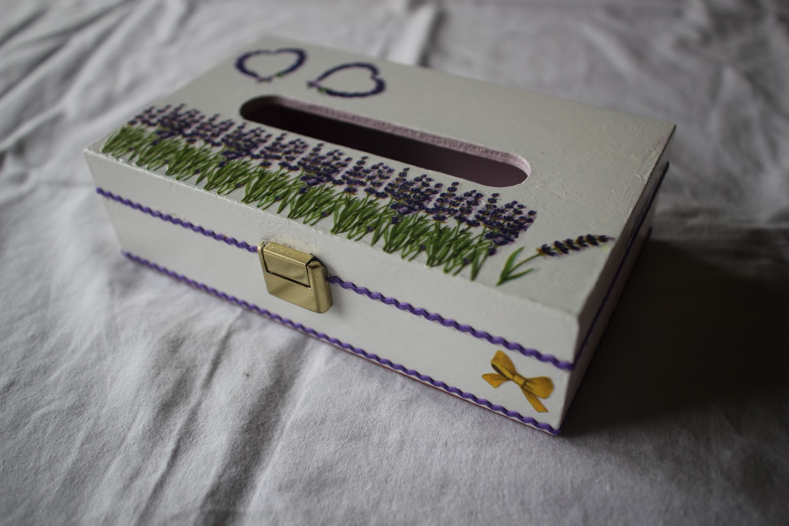 Porta tissues (interior)- pintura, aplicação de papel de arroz e fita grega