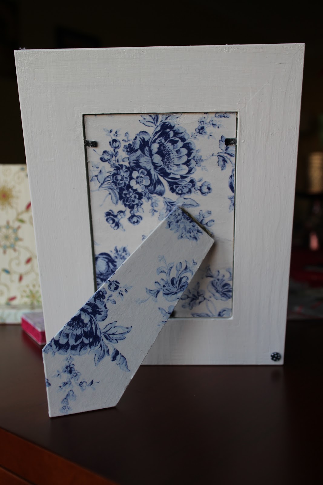 Moldura dupla em madeira, aplicação de guardanapo, fita de organza e  botãozinho colorido